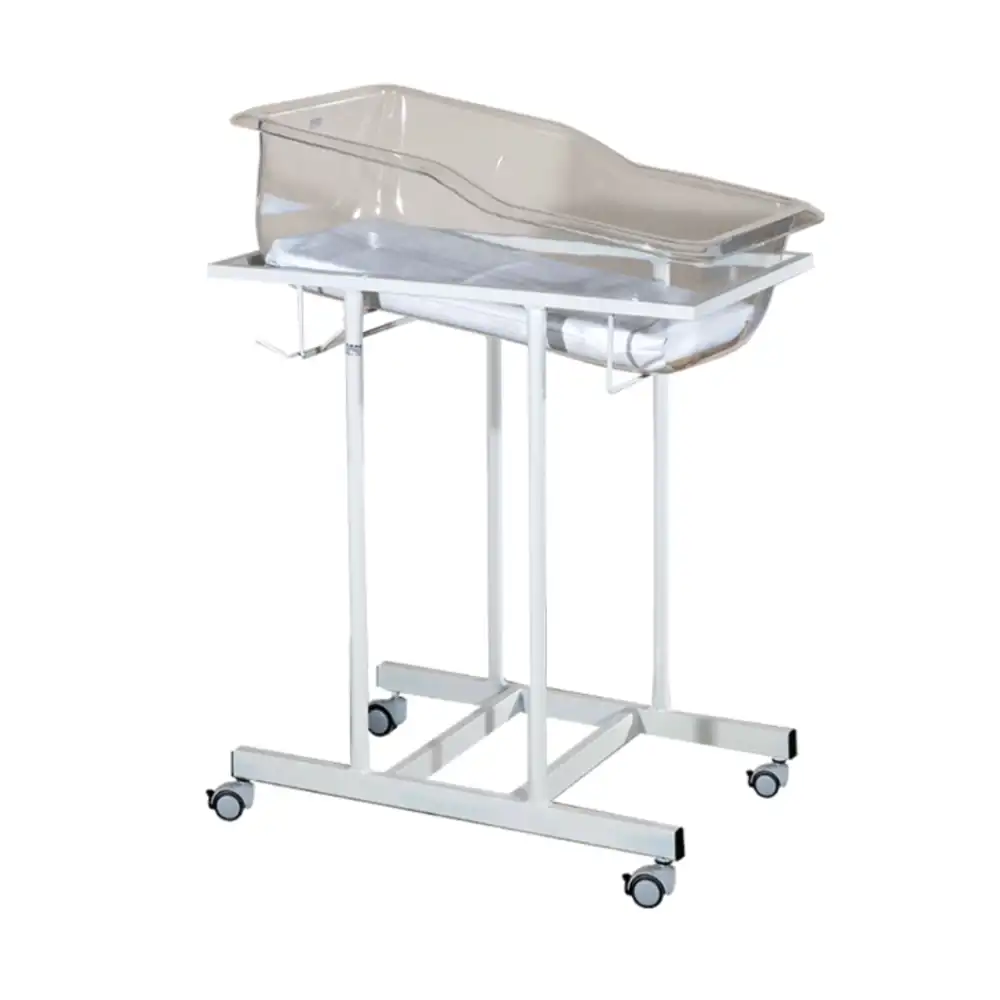 Bebek Kotu E-282/B, hastane ve klinik ortamlarında yeni doğmuş bebeklerin güvenli ve hijyenik şekilde taşınması için tasarlanmıştır. Antibakteriyel elektrostatik toz boyalı ABS antistatik gövdesi ve şeffaf pleksiglas yapısı sayesinde bebek her açıdan gözlemlenebilir. Sıvı geçirmez antibakteriyel minder hijyen ve kolay temizlik sağlarken, baş kaldırma hareketi ile bebek pozisyonu rahatça ayarlanabilir. İkisi frenli dört tekerlek sistemi güvenli taşıma imkânı sunar.