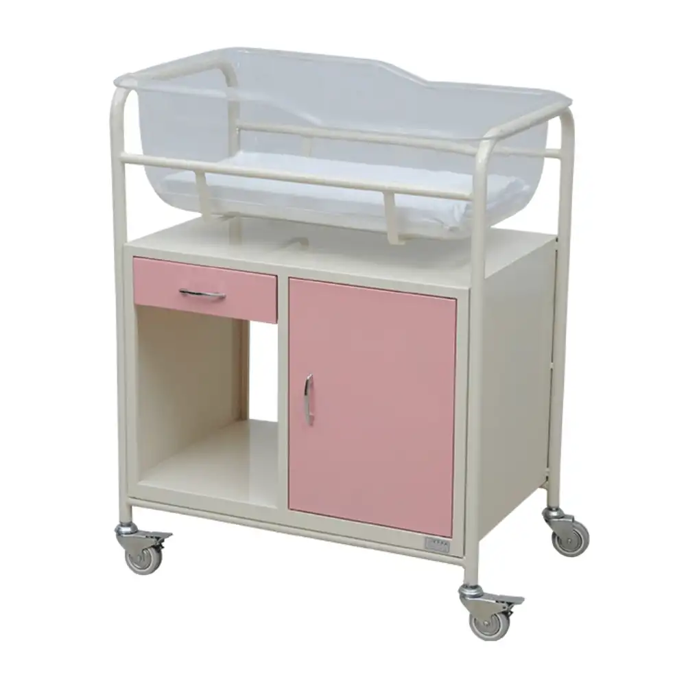 Bebek Kotu E-284, hastane ve klinik ortamlarında yeni doğan bebeklerin güvenli, hijyenik ve konforlu şekilde taşınması için geliştirilmiş premium bir modeldir. Antibakteriyel elektrostatik toz boyalı ABS antistatik gövdesi, uzun süreli dayanıklılık ve hijyen sağlar. Şeffaf antibakteriyel pleksiglas yapısı, bebeğin her açıdan gözlemlenmesine olanak tanır. Çekmece ve dolap bölümleri, bebek bakım malzemelerinin düzenli şekilde saklanmasını kolaylaştırır.
