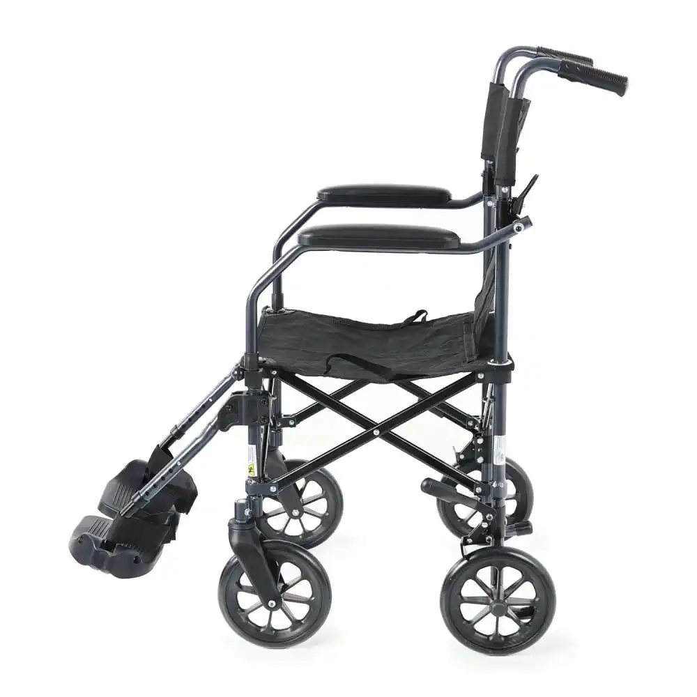 Comfort Plus DM-304 transfer portatif tekerlekli sandalye, hasta ve yaşlı bireylerin güvenli ve konforlu şekilde transfer edilmesi için özel olarak tasarlanmıştır. Hafif alüminyum şase yapısı ve katlanabilir tasarımı ile taşıma çantası sayesinde her yerde rahatlıkla kullanılabilir. Emniyet kemeri, yan kolların açılabilir olması ve ayarlanabilir ayaklıkları sayesinde kullanıcının transfer süreci daha kolay ve güvenli hale gelir. Kaymaz tekerlekleri ile yüksek stabilite sağlar. Evde, hastanede, bakım evlerinde veya seyahatlerde kullanım için idealdir.