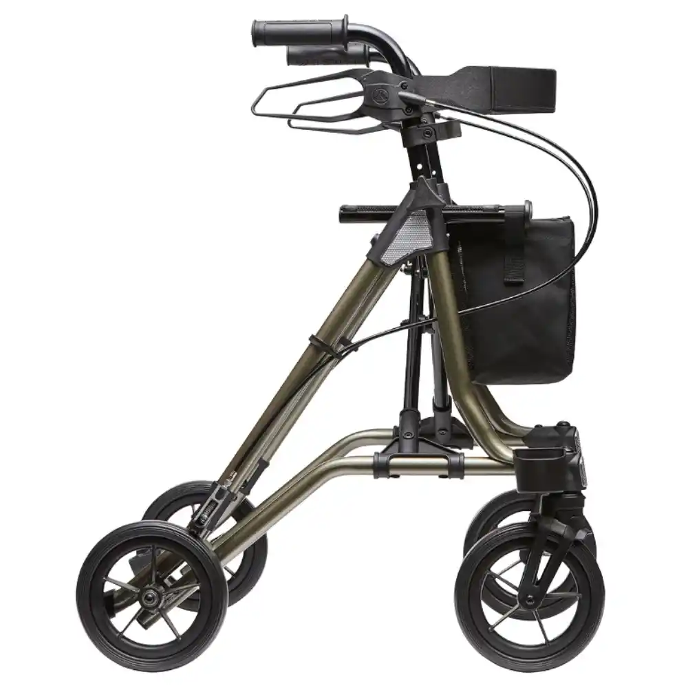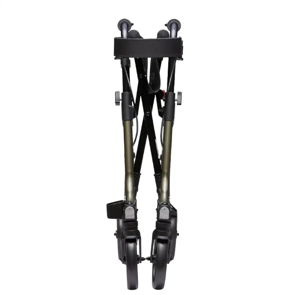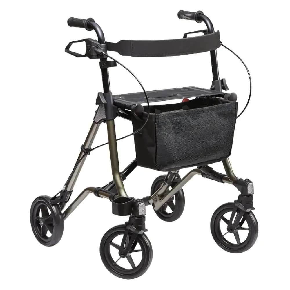 Kauçuk EVA tekerlekleri sessiz ve yumuşak bir sürüş deneyimi sunar. Darbe emici özellikleri sayesinde zemin tutuşunu artırır ve titreşimi azaltır. 79–95 cm arasında ayarlanabilir tutma kolları, 59 cm oturma yüksekliği ve 45 cm oturma genişliği ile farklı kullanıcı boylarına kolayca uyum sağlar. Katlandığında sadece 23 cm genişliğe düşen kompakt yapısı, taşıma ve depolamada büyük kolaylık sağlar.