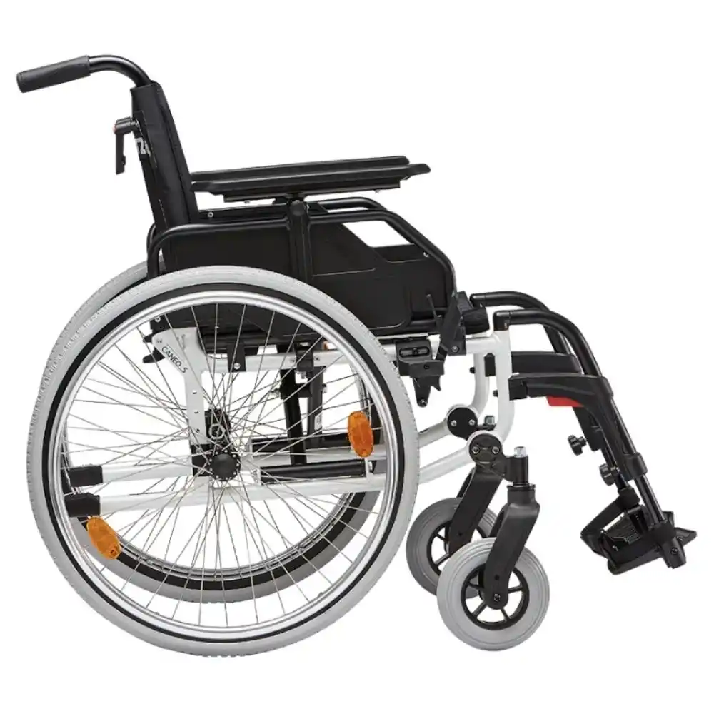 Dietz Caneo-S, Almanya üretimi ve Avrupa standartlarına uygun yapısıyla hafiflik ve dayanıklılığı bir araya getirir. 18 kg’lık alüminyum gövde, katlanabilir şase ve ayarlanabilir donanımlar sayesinde farklı vücut ölçülerine sahip kullanıcılar için kişiselleştirilebilir oturum sağlar. PU dolgulu 24” arka ve 7” ön tekerlek kombinasyonu sessiz, dengeli ilerleme sunarken hızlı sökülebilir aks yapısı bakım ve taşıma işlemlerini kolaylaştırır. Statik denge değeri 10° olan eğimlerde de stabil sürüşe imkân verir. Refakatçi kullanımına uygun ayarlanabilir itme kolları ve çıkarılabilir, yana açılabilir ayak destekleri günlük kullanım pratikliğini artırır.
