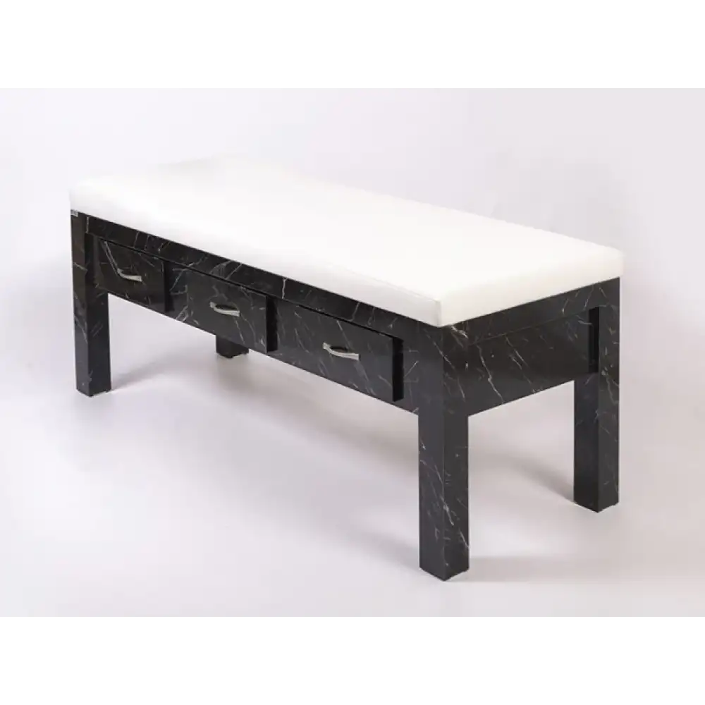 Foça Ahşap Bakım Masası, sağlam melamin kaplı bendir gövdesi ve üç çekmeceli pratik saklama alanı ile hem estetik hem fonksiyonel avantaj sunar. Leke tutmaz ve silinebilir döşemesi, kaliteli süngeri ve yüksek taşıma kapasitesi sayesinde profesyonel kullanımda güven ve konfor sağlar.