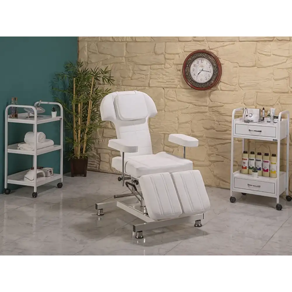 Hisar-3 Hidrolikli Koltuk Klasik Beyaz 2405, hem estetik hem de işlevsel açıdan profesyonel beklentileri karşılayan bir üründür. Hidrolik mekanizması sayesinde yükseklik ayarı kolaylıkla yapılabilirken, sedye pozisyonu farklı işlemler için esnek kullanım olanağı sağlar. Kaliteli malzeme yapısı, modern tasarımı ve uzun ömürlü dayanıklılığıyla profesyonel ortamların vazgeçilmez tercihlerindendir.