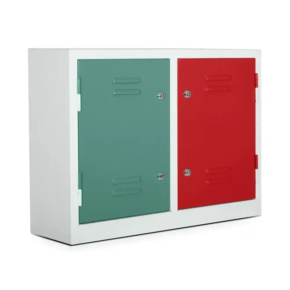 Dolabın yeşil ve kırmızı renkli kapakları, kolay fark edilebilir bir görünüm sunarken, aynı zamanda estetik bir dokunuş katar. Kilitlenebilir kapaklar, içeriğin güvenli bir şekilde muhafaza edilmesine olanak tanır. Kompakt yapısı sayesinde masa altı, dolap içi ya da sınırlı alanlarda kullanım için uygundur.