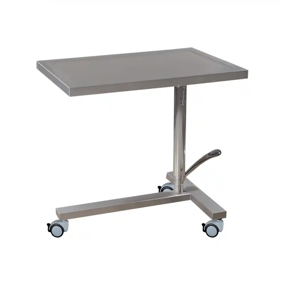 E-277 modeli mayo masası, 304 kalite paslanmaz çelikten üretilmiş yüksek dayanımlı gövdesi ve fonksiyonel detaylarıyla medikal ortamlarda profesyonel kullanım için tasarlanmıştır. Hem sağlam hem de hijyenik yapısı sayesinde ameliyathane, müdahale odası ve steril alanlarda güvenli kullanım sağlar.