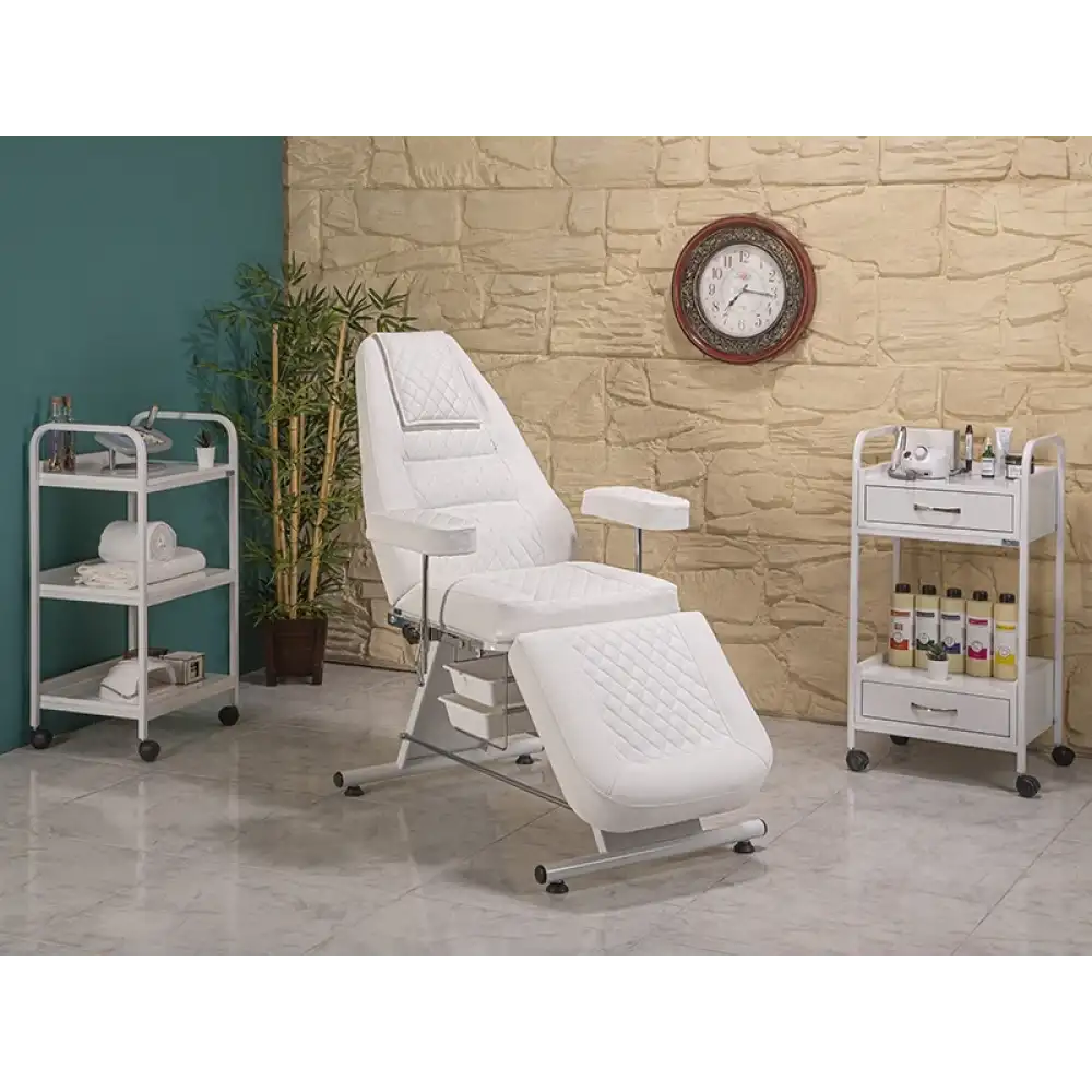 Montana Sırt ve Ayak Kısmı Hareketli Koltuk Beyaz 2301, ergonomik yapısı ve ayarlanabilir bölümleri sayesinde kullanıcıya maksimum konfor sağlar. 28 dans. gri sünger ve vinlex deri döşemesiyle hem dayanıklılık hem de rahatlık sunar. Sırt ve ayak kısımlarının bağımsız olarak ayarlanabilmesi, farklı pozisyonlarda kullanım olanağı sağlar. Profesyonel uygulama alanları için ideal bir tercihtir.