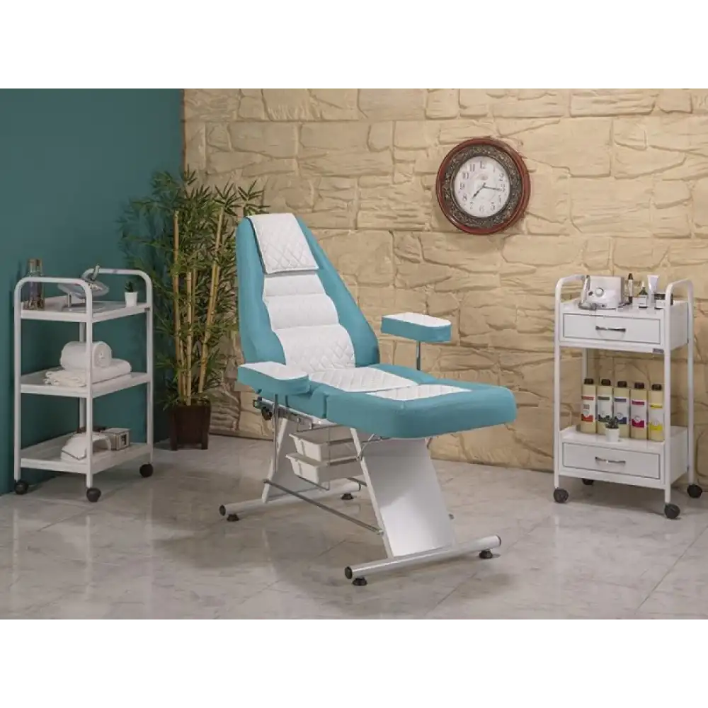 Montana Sırt ve Ayak Kısmı Hareketli Koltuk Turkuaz - Beyaz 2302, ergonomik yapısı ve ayarlanabilir bölümleri sayesinde kullanıcıya maksimum konfor sağlar. 28 dans. gri sünger ve vinlex deri döşemesiyle hem dayanıklılık hem de rahatlık sunar. Sırt ve ayak kısımlarının bağımsız olarak ayarlanabilmesi, farklı pozisyonlarda kullanım olanağı sağlar. Profesyonel uygulama alanları için ideal bir tercihtir.