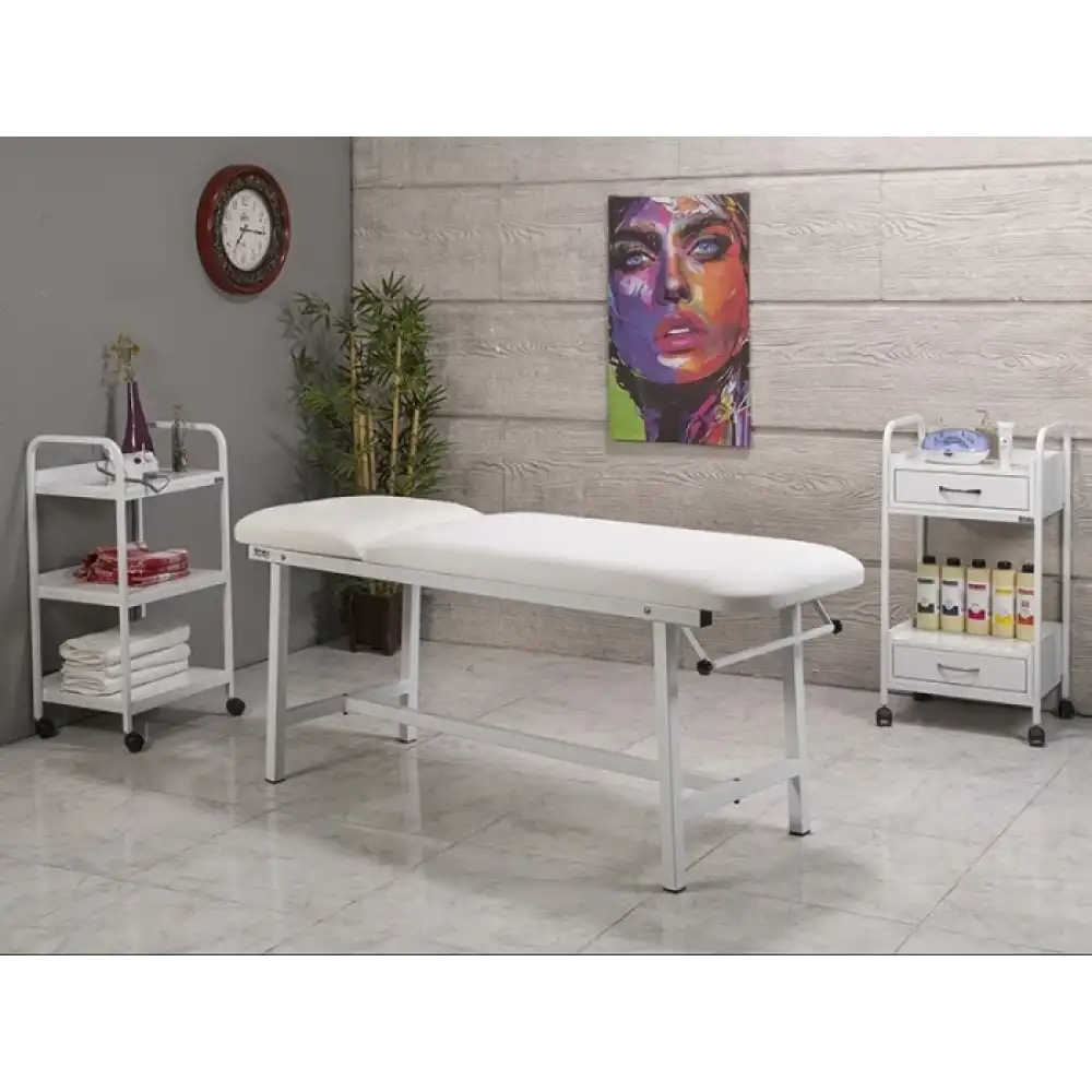Oval Katlanır Ayaklı Bakım Masası Havluluk Aparatlı Beyaz | Manuel Sırt Ayarlı 3101