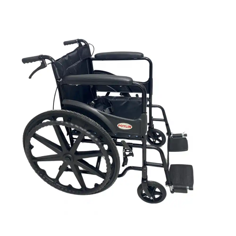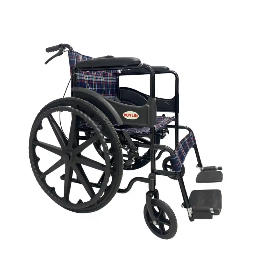 Poylin P100 ekonomik tekerlekli sandalye, çelik gövdesi ve kompakt yapısıyla kısa süreli kullanım ihtiyaçlarına yönelik tasarlanmış bir modeldir. Katlanabilir yapısı ile kolay taşınabilirken, refakatçi freni ve itme kolları sayesinde hasta taşımasında güvenli kullanım sağlar. Antibakteriyel döşemesi sayesinde hijyeniktir ve kolay temizlenir. Kurumlar, hastaneler ve bağışçılar tarafından sıkça tercih edilen model, uygun fiyatı ve uzun ömürlü kullanımıyla öne çıkar.