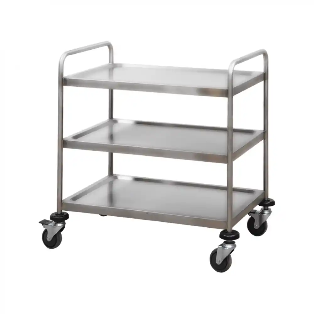 Paslanmaz çelik gövdesi ve sağlam yapısıyla dikkat çeken E-261/A model malzeme arabası, profesyonel ortamlarda güvenli ve hijyenik taşımayı mümkün kılar. Üç katlı yapısıyla geniş taşıma kapasitesi sunan bu ürün; hastaneler, laboratuvarlar, mutfaklar, üretim tesisleri ve servis alanları gibi yoğun kullanıma uygun alanlarda tercih edilmektedir.