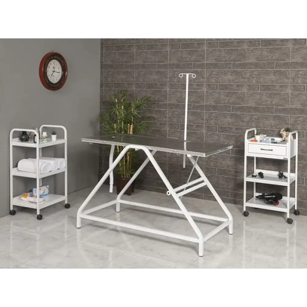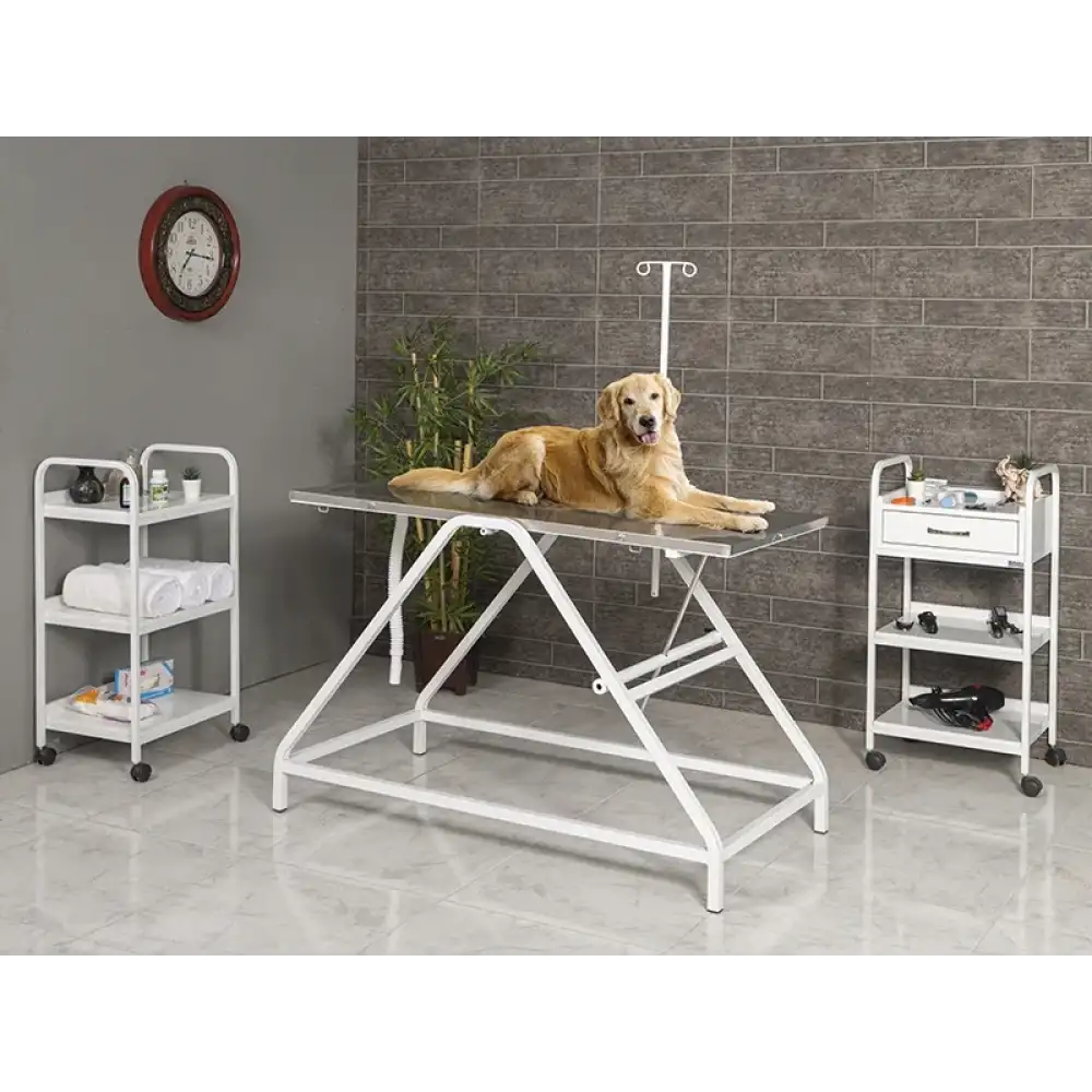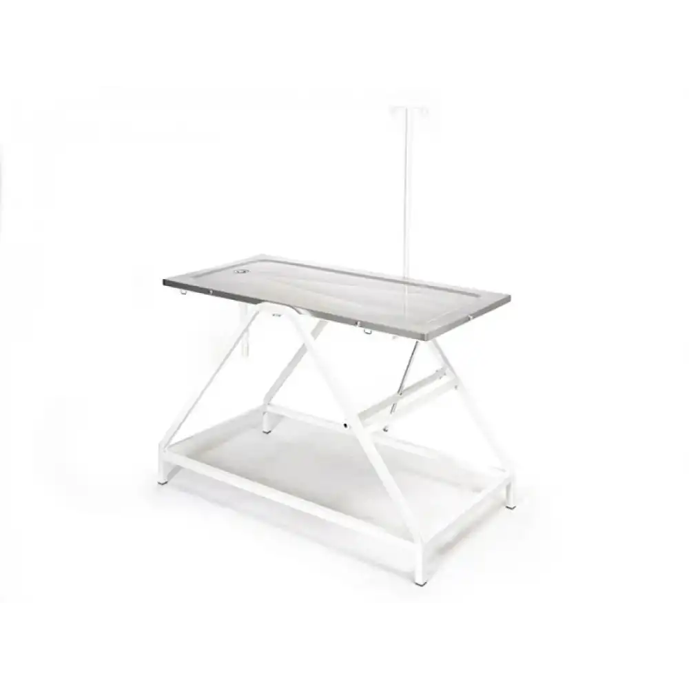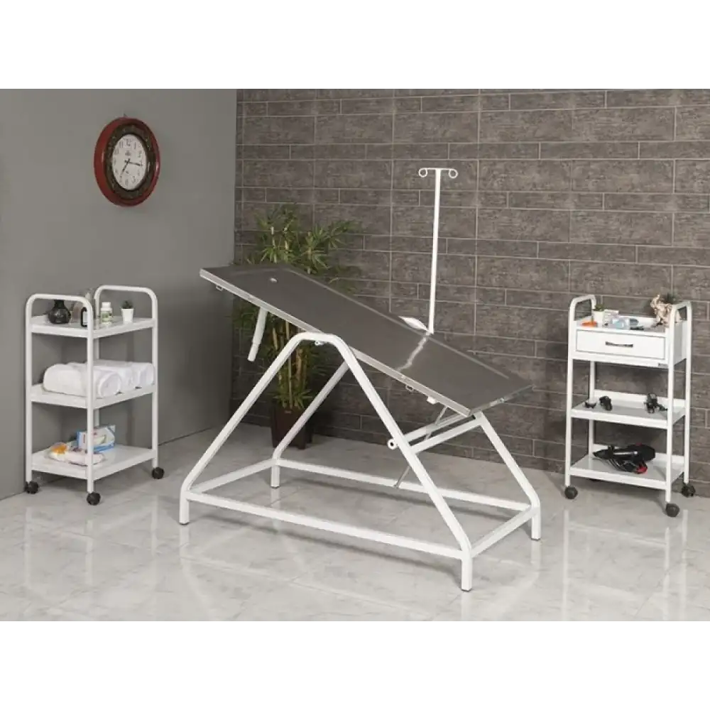 Veteriner kliniklerinde ameliyat ve operasyon süreçlerinde güvenli ve kontrollü bir çalışma alanı sunmak üzere tasarlanan bu masa, 304 kalite paslanmaz çelik üst tablası ve sağlam gövde yapısıyla uzun ömürlü kullanım sağlar. Trendelenburg hareket kabiliyeti sayesinde masa tablasına istenen eğim verilebilir ve klinik ihtiyaçlara göre çalışma pozisyonu ayarlanabilir. Serum askı aparatı ile fonksiyonelliği artırılmıştır ve üst tabla dışındaki yüzeylerin elektrostatik toz boyalı oluşu temizlik ve bakım kolaylığı sağlar.
