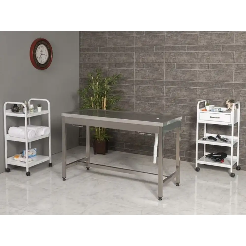 Veteriner masası, klinik ve bakım uygulamalarında hijyen, dayanıklılık ve güvenlik gereksinimlerini karşılamak amacıyla tasarlanmıştır. Tamamı 304 kalite paslanmaz krom malzemeden imal edilen yapısı paslanmaya karşı direnç gösterir. Düz üst yüzeyi ve sağlam konstrüksiyonu ile düzenli ve kontrollü bir çalışma ortamı oluşturur.