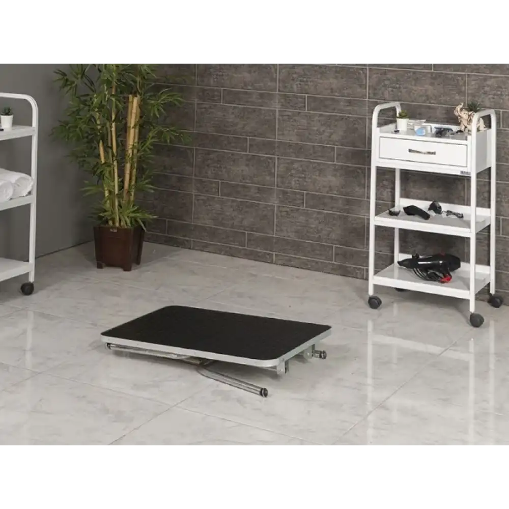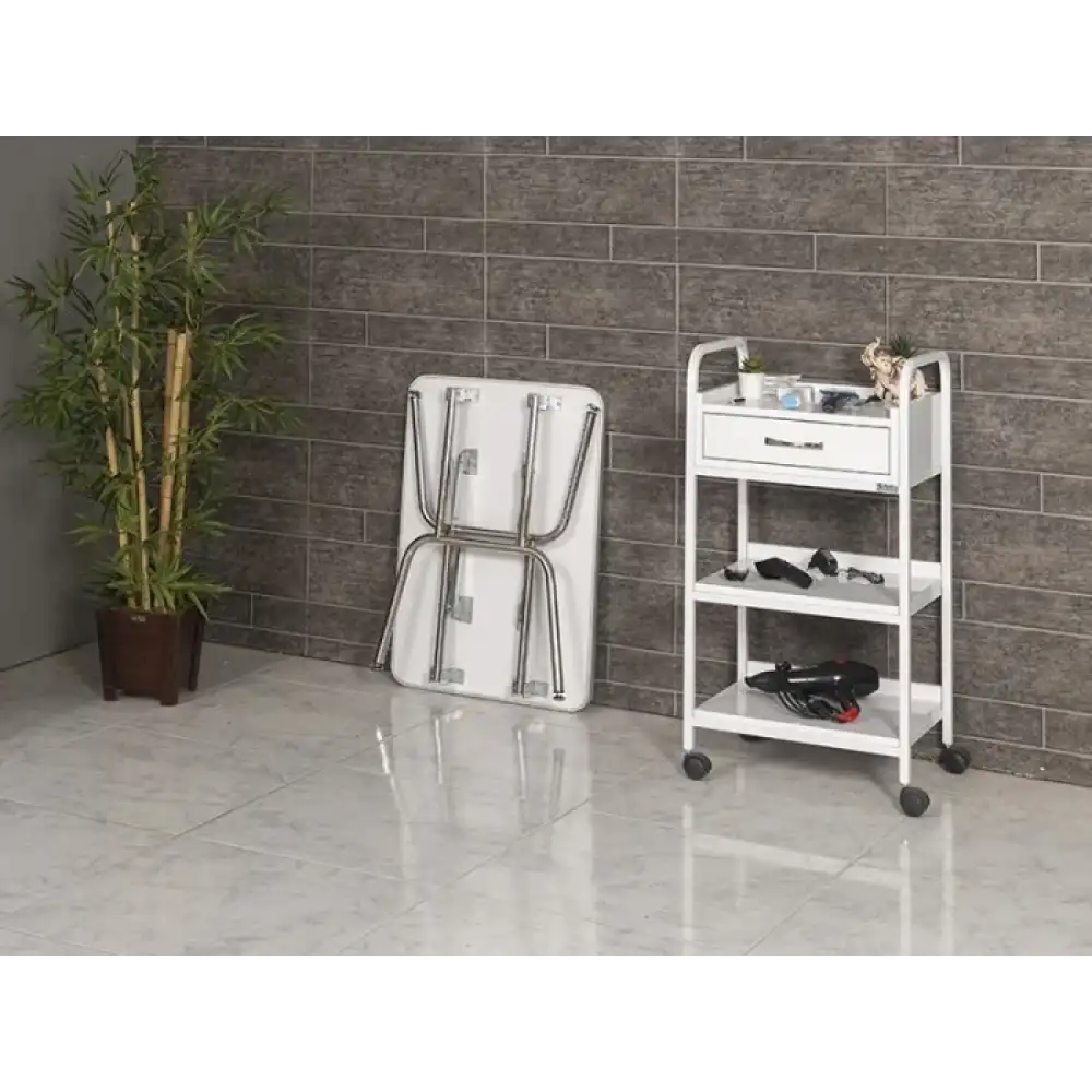 Katlanır ayaklı yapısı sayesinde pratik şekilde taşınabilir ve depolanabilir olan bu masa, kaymaz kauçuk yüzeyi ile güvenli çalışma alanı sunar. Dayanıklı MDF üzerine döşenen yapısı ile uzun ömürlü kullanım sağlar ve kliniklerde, bakım merkezlerinde veya mobil hizmetlerde işlevsel bir çözüm oluşturur.
