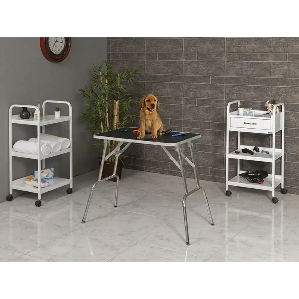 Veteriner pet bakım ve muayene masası, kauçuk kaplı üst yüzeyi ile kaymayı engelleyerek güvenli kullanım sağlar. MDF üzerine döşenen kauçuk yapı hem dayanıklı hem de kolay temizlenebilir bir yüzey sunar. Katlanır ayakları sayesinde kullanım dışı durumlarda yer kaplamadan kaldırılabilir. Dilerseniz opsiyonel olarak çıkarılabilir kromajlı bar aksesuarı da eklenebilir. Taşınabilir yapısı ve sağlam gövdesi sayesinde birçok çalışma alanı için uygun bir çözümdür.